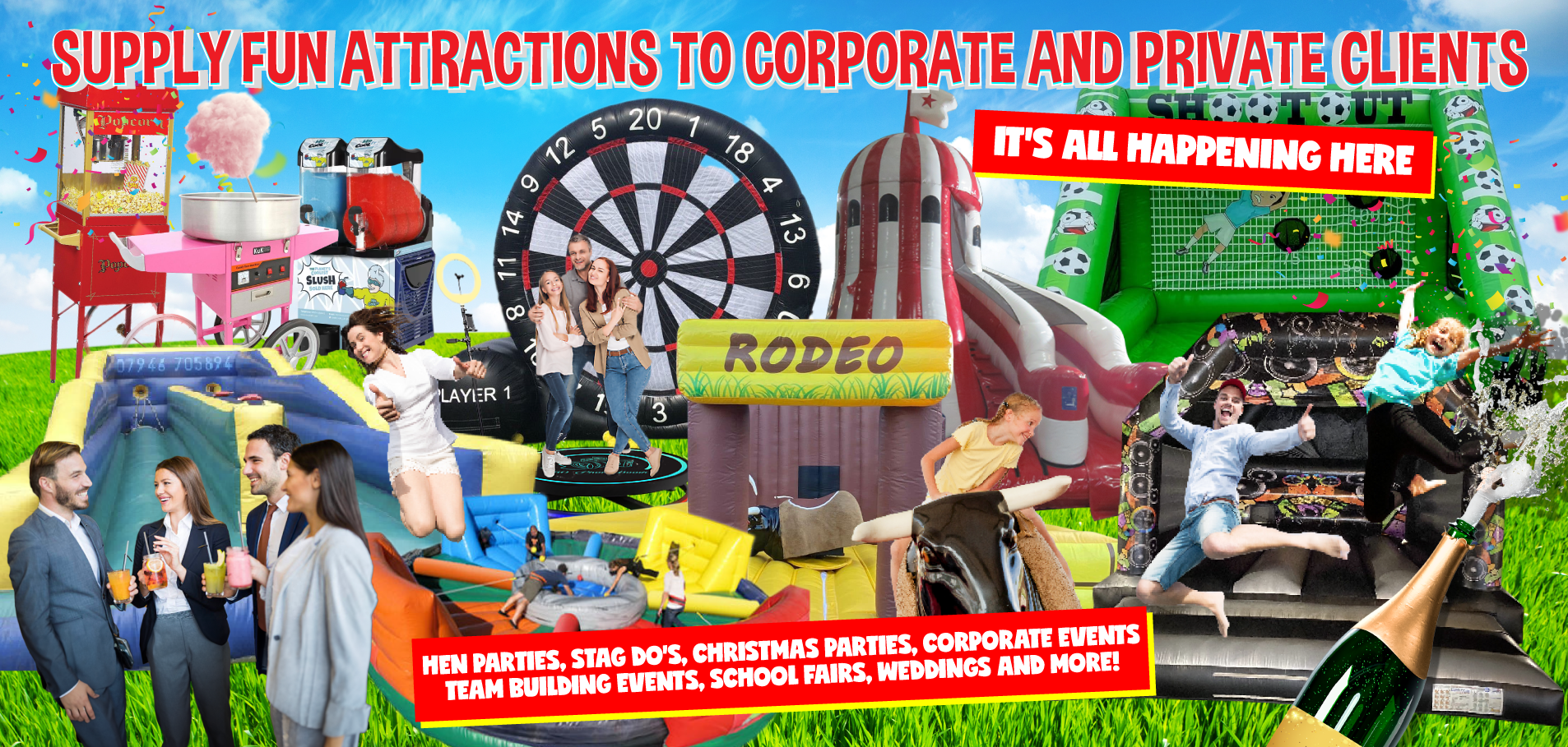 This section on our website will give you just a small selection of ideas that you could use on a corporate event, party, wedding, christening, team building or school fun day events. We're a company that's big enough to cope and small enough to care for any size event (big or small). With us you have the chance to try our amazing products, such as;