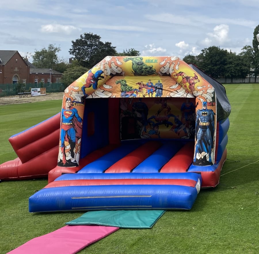 Spring into Action with Our Super Hero Bouncy Castle and Slide!