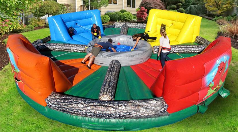 Just like the board game ,the aim of the game is to see who can get the most balls from the middle of the inflatable ring onto their side. Four contester's can play at a time, all you have to do is get yourself strapped into the elasticated bungee rope and aim for the centre of the pit and collect as much balls as you can to beat the other players!